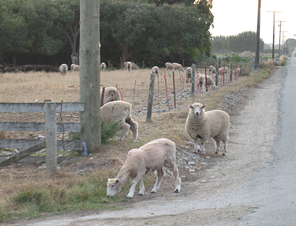 途中、羊牧場があり、牧場外に出ている二匹の羊に出会うのでした。